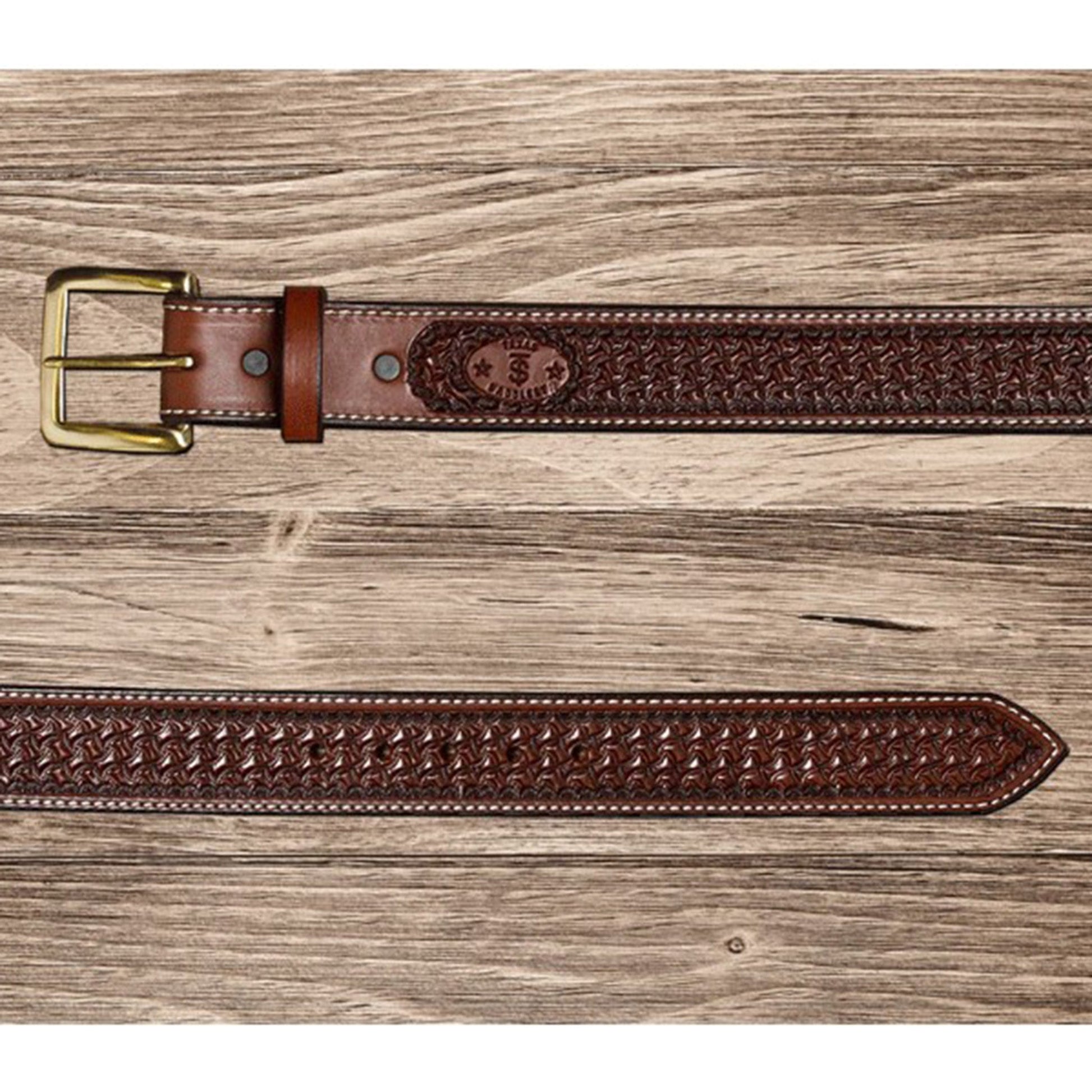Texas Saddlery Basket Stamped Belts are handmade and hand tooled by their expert craftsmen. Made from top-quality saddle leather with edge stitching. They come with the removable buckles.