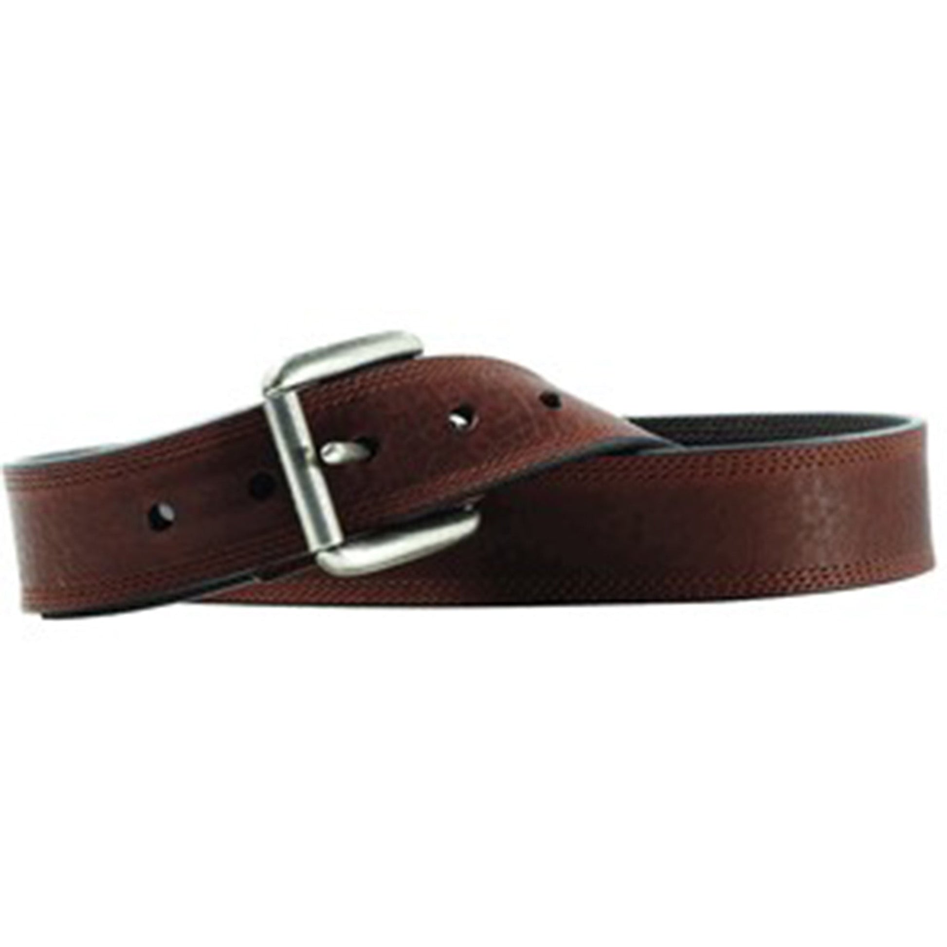 This men's Ariat triple stitch work belt from M&F Western features a full grain leather belt, removable buckle, boot matched leathers, grip strip technology to prevent belt slippage, and signature hardware.