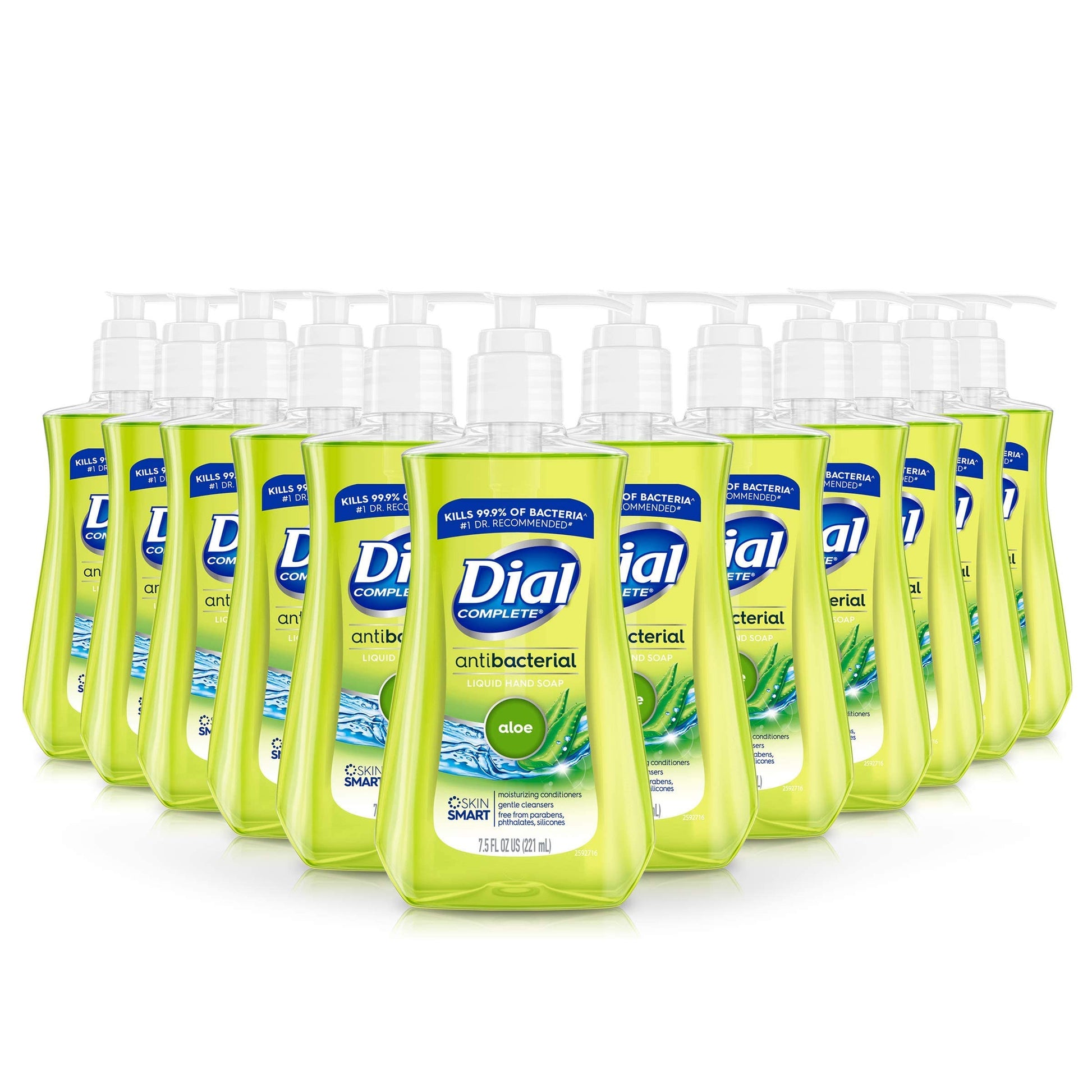Details: ANTIBACTERIAL AND MOISTURIZER: Dial liquid hand soap is not just a normal hand soap, It's an antibacterial soap and moisturizer which kills 99.99% of the harmful germs and bacteria and gives your hard working hands a soft and smoothing feel. It feels gentle on all kinds of skins and gives you a fresh softening and smoothing scent of Aloe.Its kills germs with the new Dial Total Clean Formula. ENVIRONMENTALLY FRIENDLY: Dial Hand soap is an environmentally friendly soap. It is free of triclosan, parabens, phthalates, and formaldehyde. This non-toxic formula is non-irritating, making it ideal with sensitive skin. Spend your money on soap not plastic; reduce plastic consumption and cut down on landfill waste by refilling existing soap dispensers. ANTIMICROBIAL EFFECTIVENESS: This liquid antibacterial soap contains Benzalkonium Chloride 0.13%, Aqua (Water, Eau), Lauramidopropylamine Oxide, Glycerin, Cetrimonium Chloride, Lauramine Oxide, Sodium Chloride, PEG-120 Methyl Glucose Dioleate, Citric Acid, Sodium Benzoate, Myristamidopropylamine Oxide, Parfum (Fragrance), Zinc Sulfate, Aloe Barbadensis Leaf Juice, Dimethyl Lauramine, Tetrasodium EDTA, Alcohol, Dimethyl Myristamine, CI 19140 (Yellow 5), CI 42090 (Blue 1)and it kills 99.99% of germs and bacteria in your household.