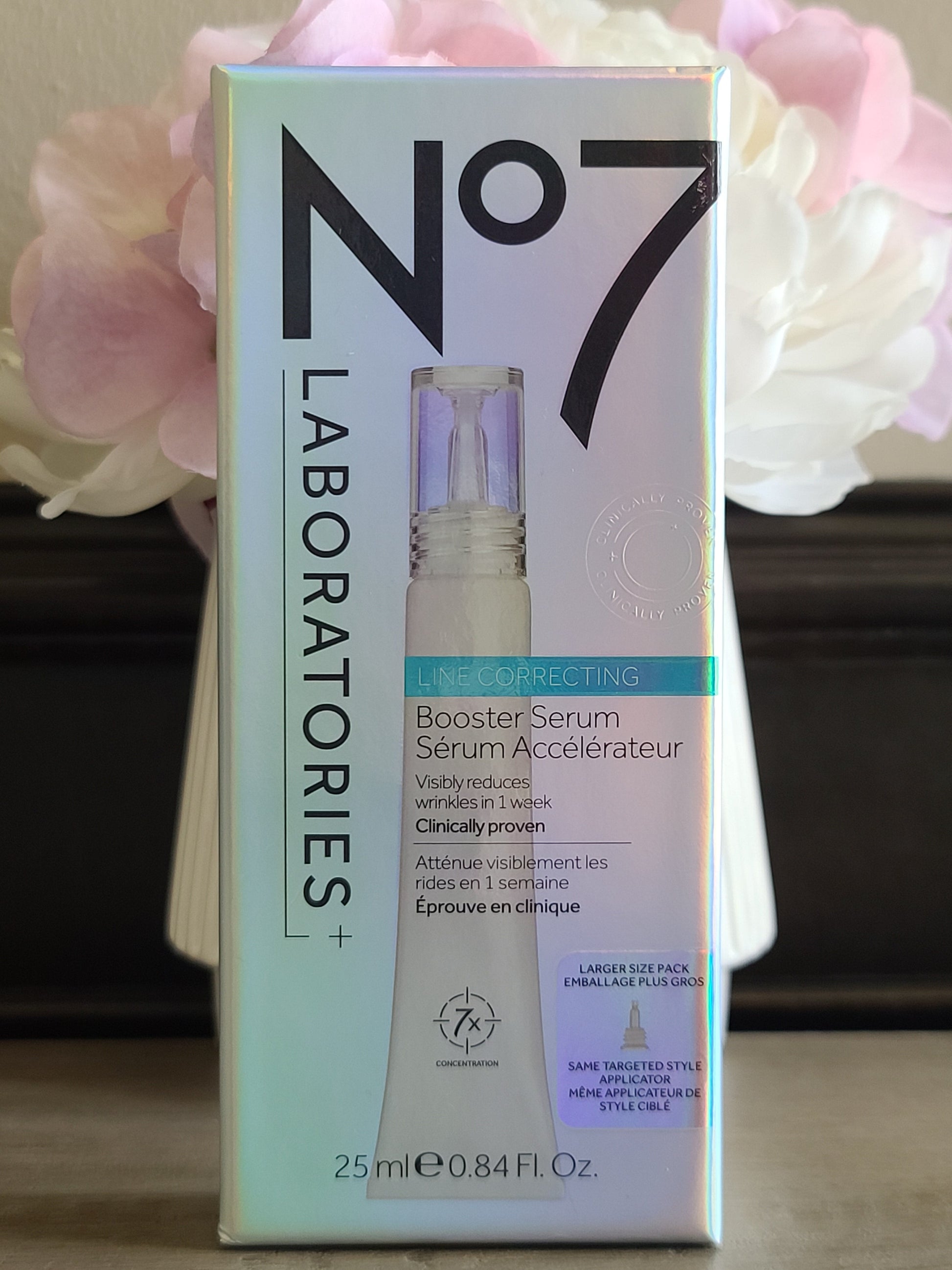 - Among women who were considering injectables, after trialing the product for 2 months: 76% said No7 Line Correcting Booster Serum gave them better results than they thought possible from skincare**