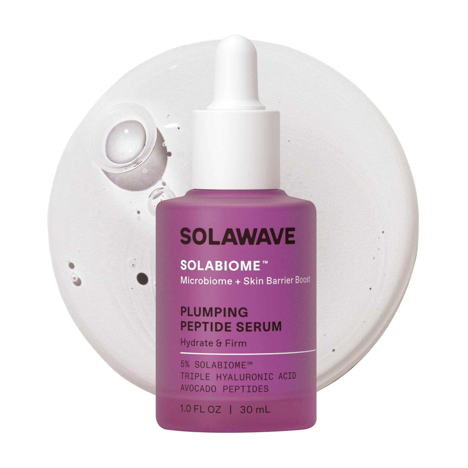 - Plumping Peptide Serum is made with Solabiome, our proprietary skin-balancing synbiotic (pre- & probiotic) complex made with topical probiotics that promote skin regeneration for a visibly brighter complexion.