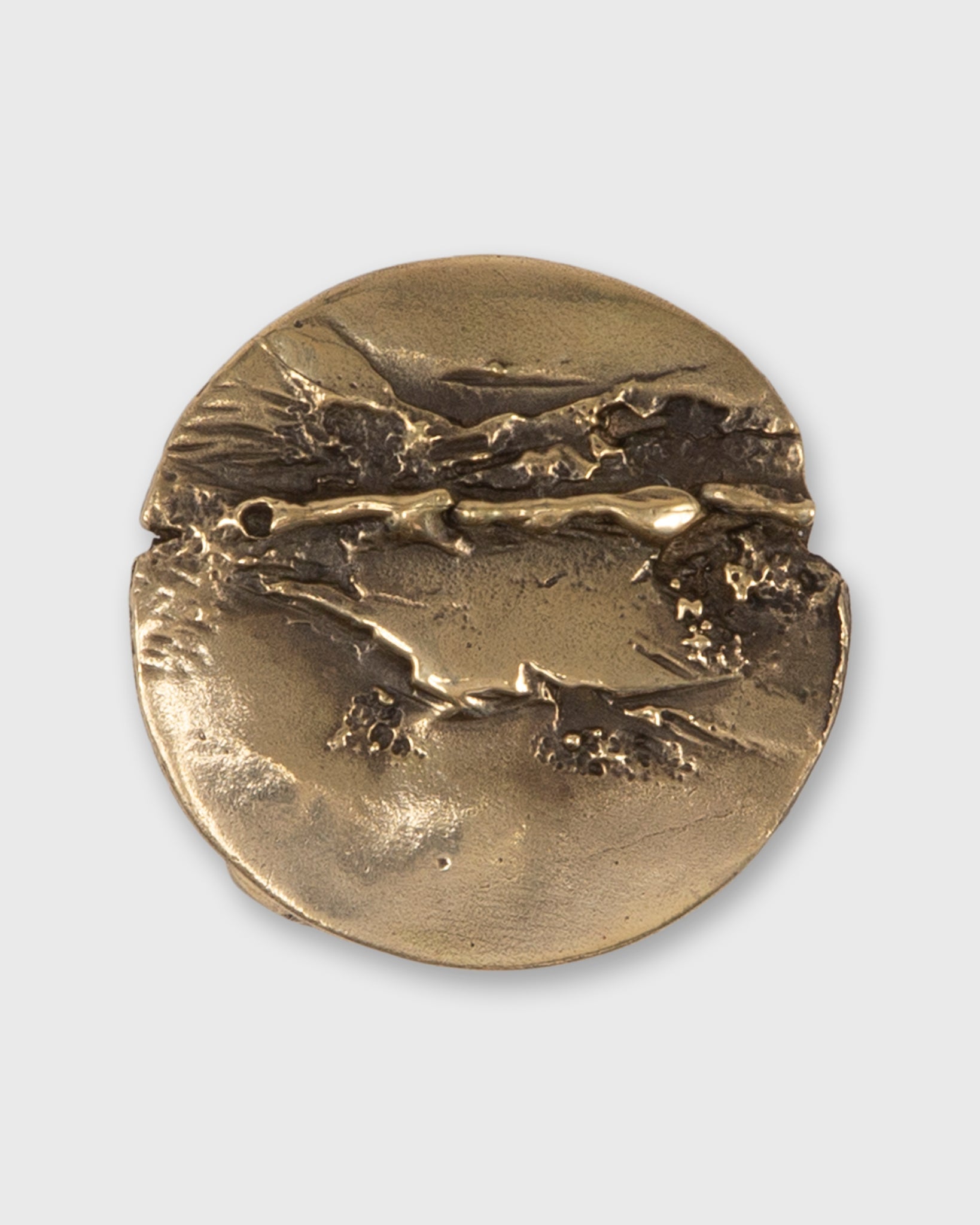 This belt buckle is handcast in Massachusetts by master metalworkers who make their own wax and finish the buckles by hand. The shape is slightly psychedelic without going too off-road. It's made of unlacquered brass, which will take on a great patina over time, and it'll fit any 1" or 1.25" belt strap with snaps... we make lots.